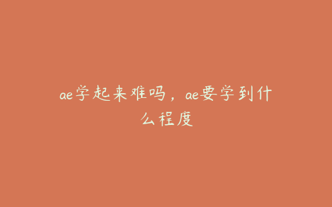AE学习的初始门槛